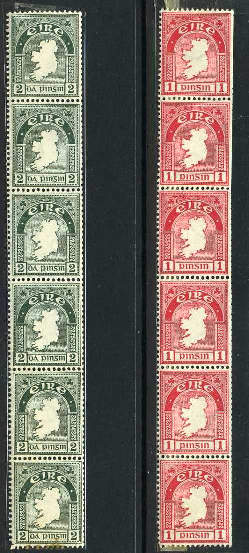 DC022 Image | 1940-68 E Wmk. Paste Up Coil Join strips of 4 1d and 2d values both unmounted mint.