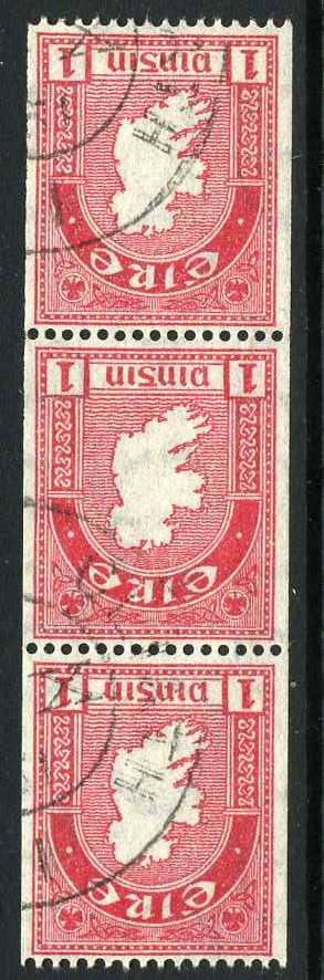 DC031 Image | 1946 E Watermark 1d Coil Perf 15 by Imperf with variety watermark inverted cds used strip of 3. Each