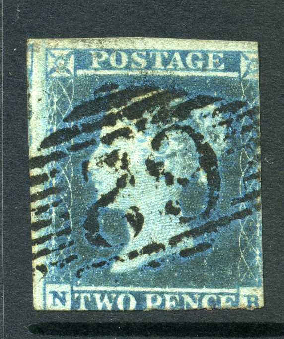 GB001 Image | 2d Blue 2 margin copy used with Belfast numeral cancel.