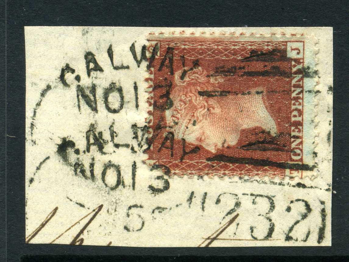 GB011 Image | 1858 Penny Red (blunt top left corner perf) used on piece with fine strike of Galway Spoon cancel 13/11/58