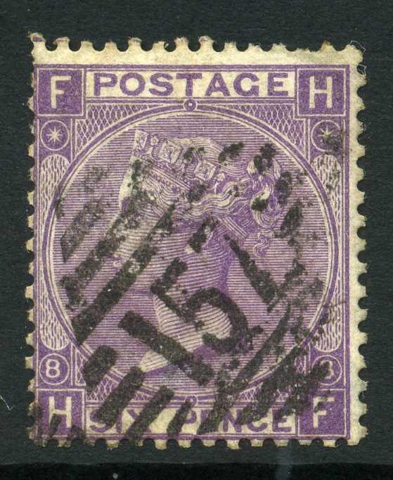GB031 Image | 1867-80 wmk. Spray 6d Violet Plate 8 used with 157 numeral.