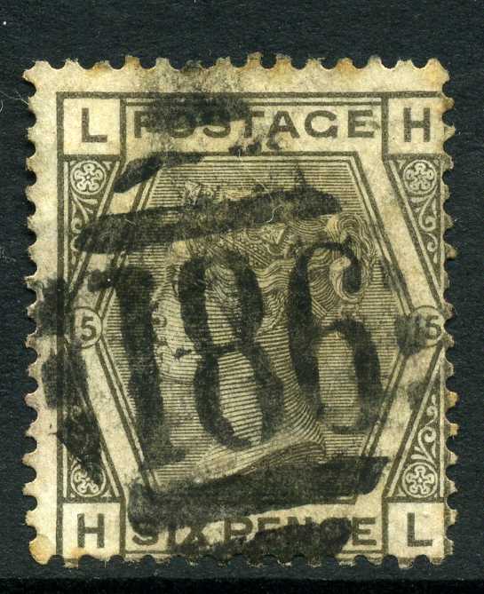 GB042 Image | 1873-80 wmk. Spray 6d Grey Plate 15 used with 186 numeral of Dublin