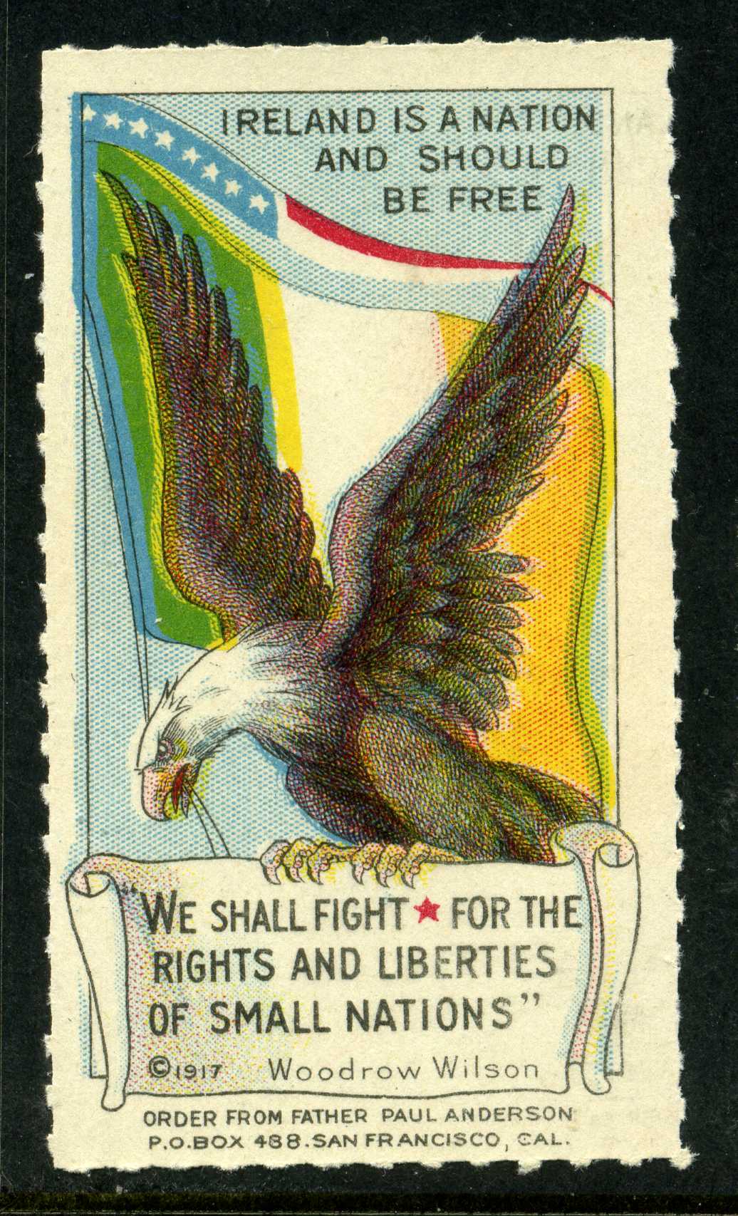 POL036.5 Image | Poster Stamp Ireland is a Nation and should be Free showing an Eagle in front of the Irish Tricolour fine mint. | 60 |