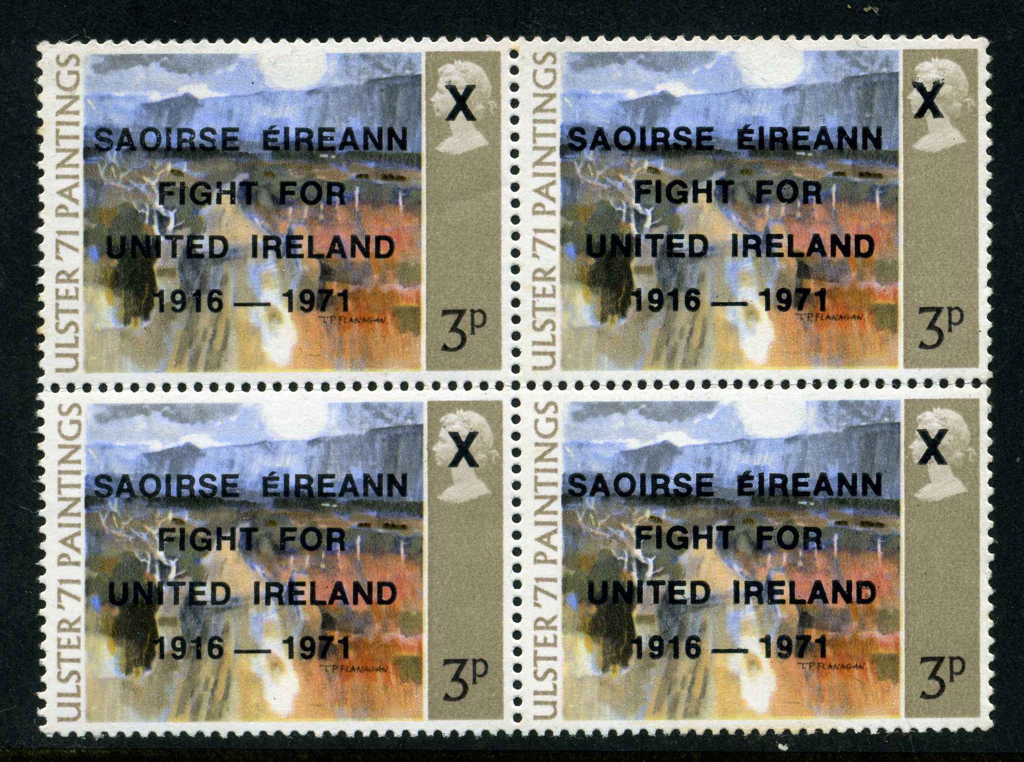 POL045 Image | Illegal Sinn Fein overprint on Ulster paintings 3p value unmounted mint block of 4 | 35 |