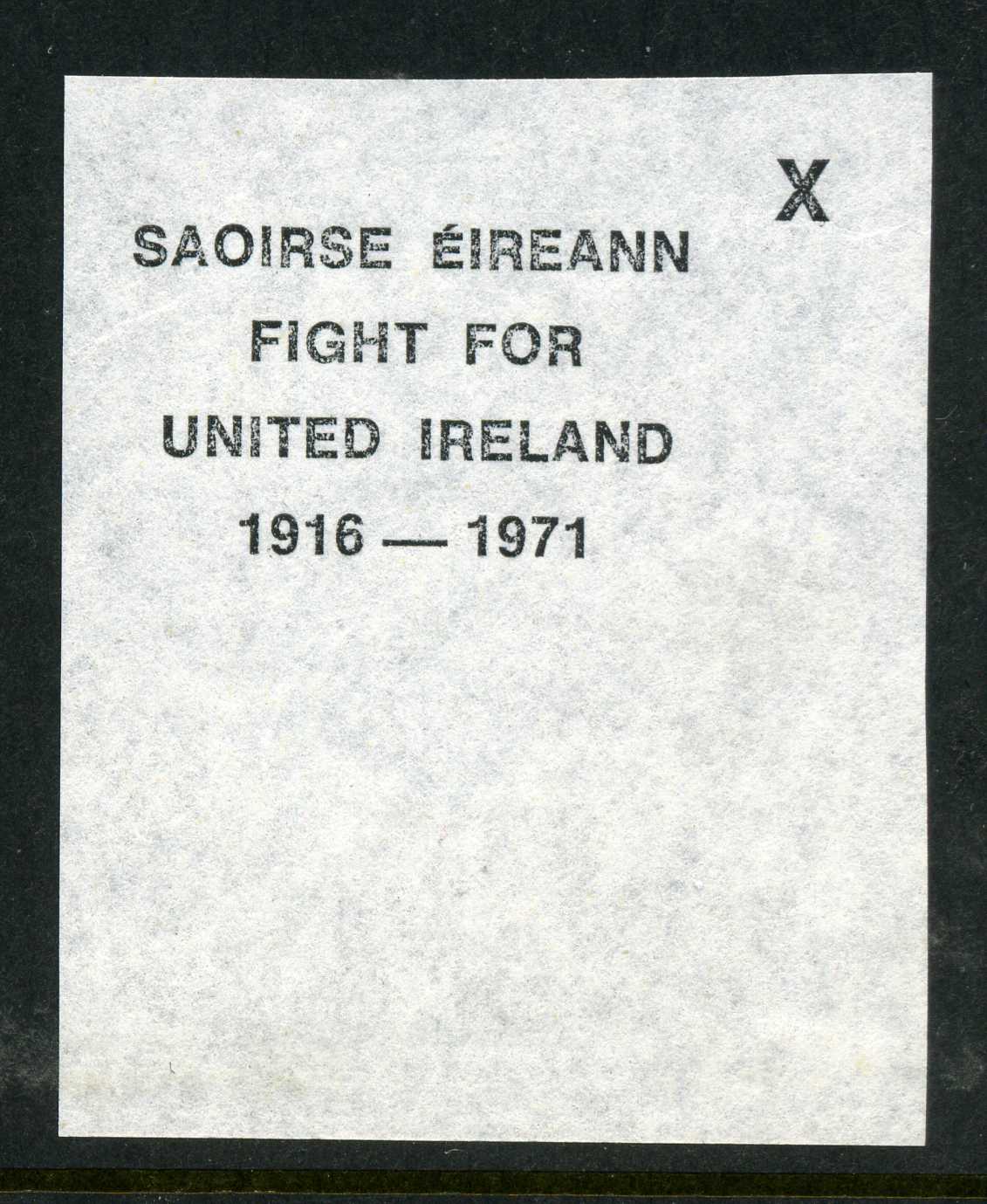 POL048 Image | 1971 Proof Strike on thin white paper of Sinn Fein overprint used on Ulster Paintings | 20 |