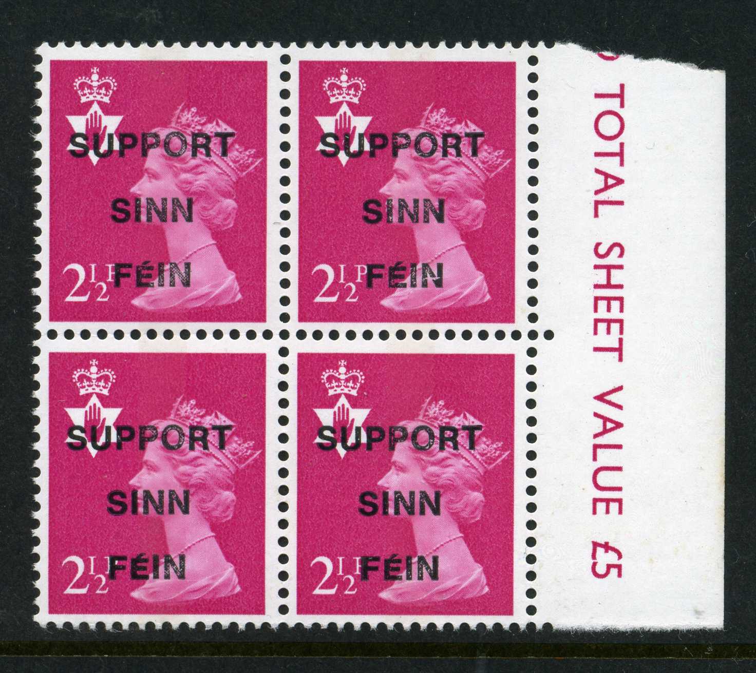 POL049 Image | 1971 Illegal Sinn Fein overprint "Support Sinn Fein" on Northern Ireland Regional 2 ½p value unmounted mint. | 10 |