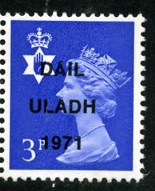 POL051 Image | 1971 Illegal Sinn Fein overprint "Dail Uladh" on Northern Ireland Regional 3p value unmounted mint. | 10 |