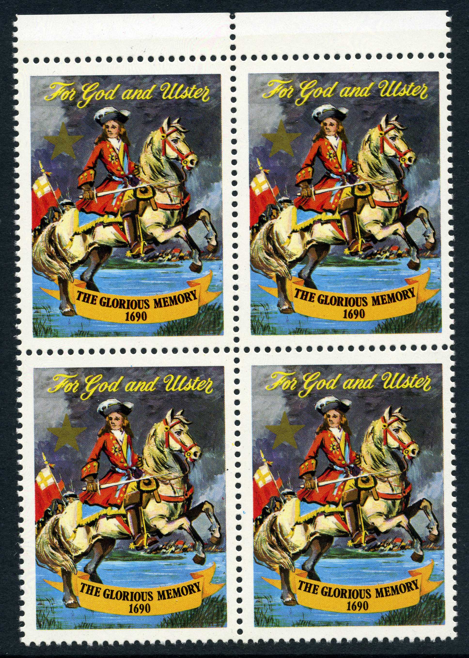 POL056 Image | 1990 Multicoloured Perforated label to commemorate the 300th anniversary of the Battle of the Boyne block of four | 20 |