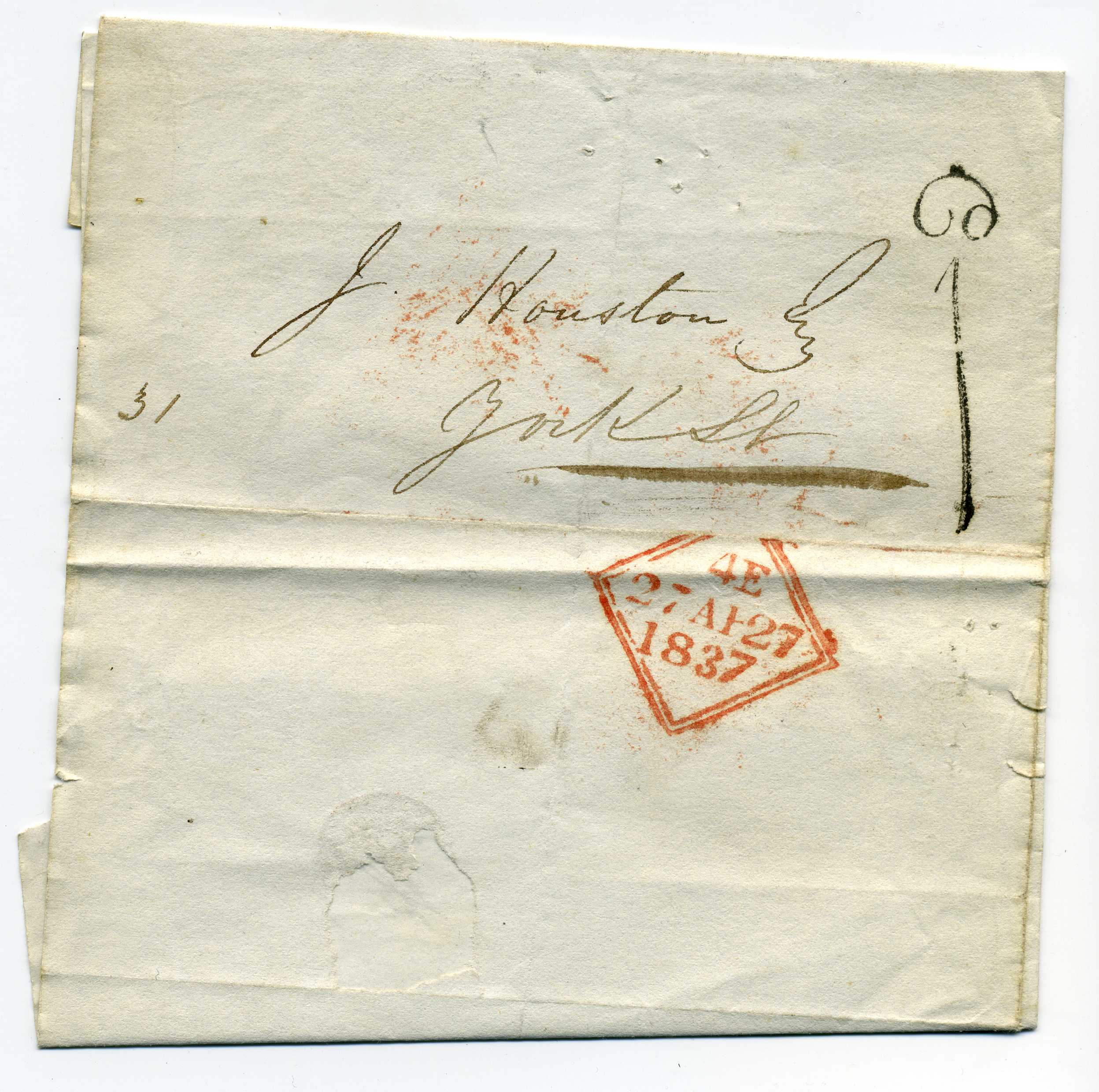 PH005.1Image | 1837 Entire Letter with excellent strike of Uniform Penny Post 1d of Dublin |