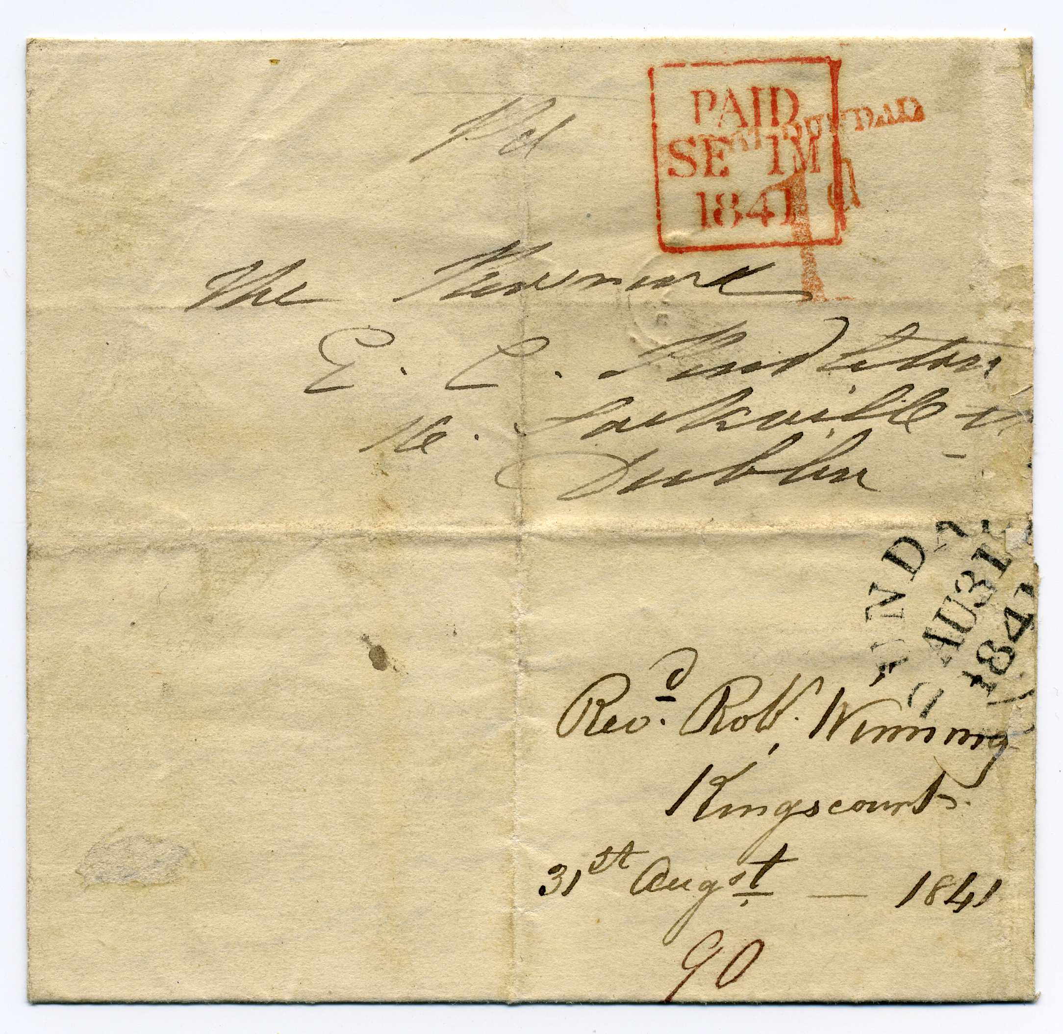 PH006Image | 1841 Entire Letter Dundalk to Dublin with good strike "Paid at Dundalk 1d" uniform 1d Post Handstamp.