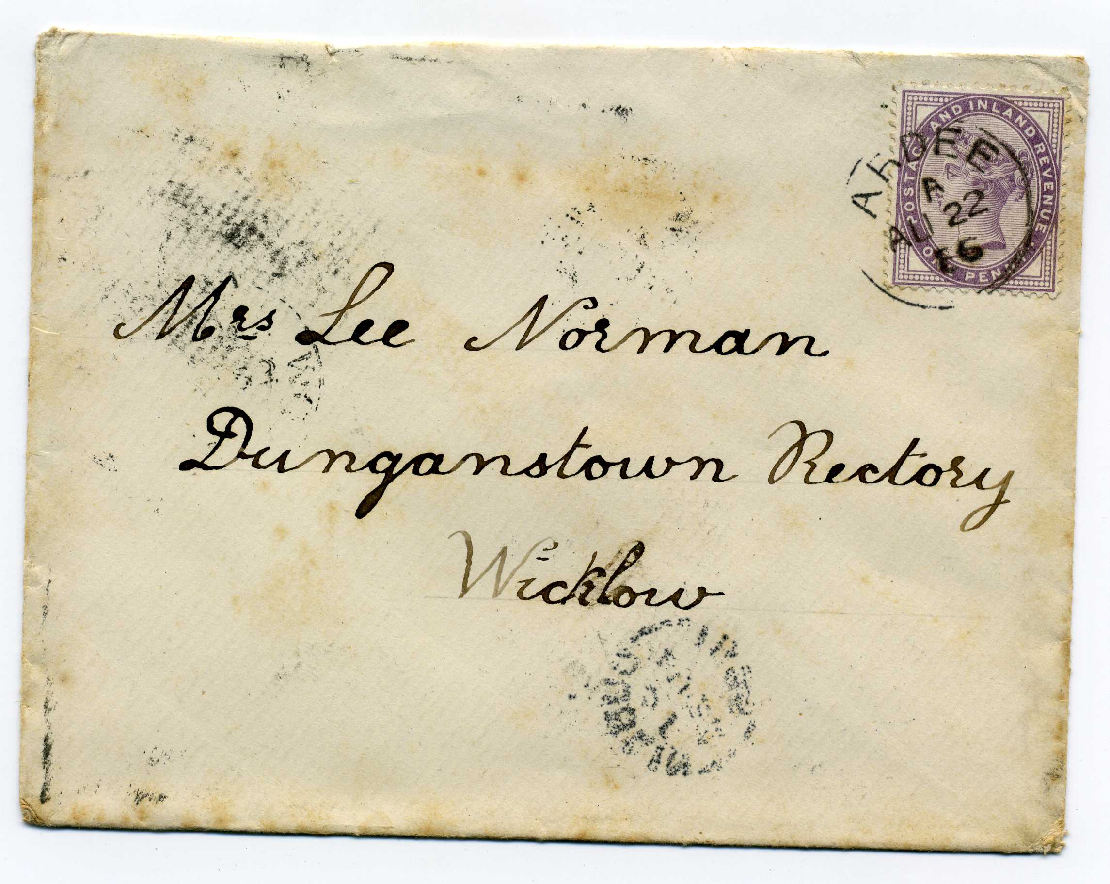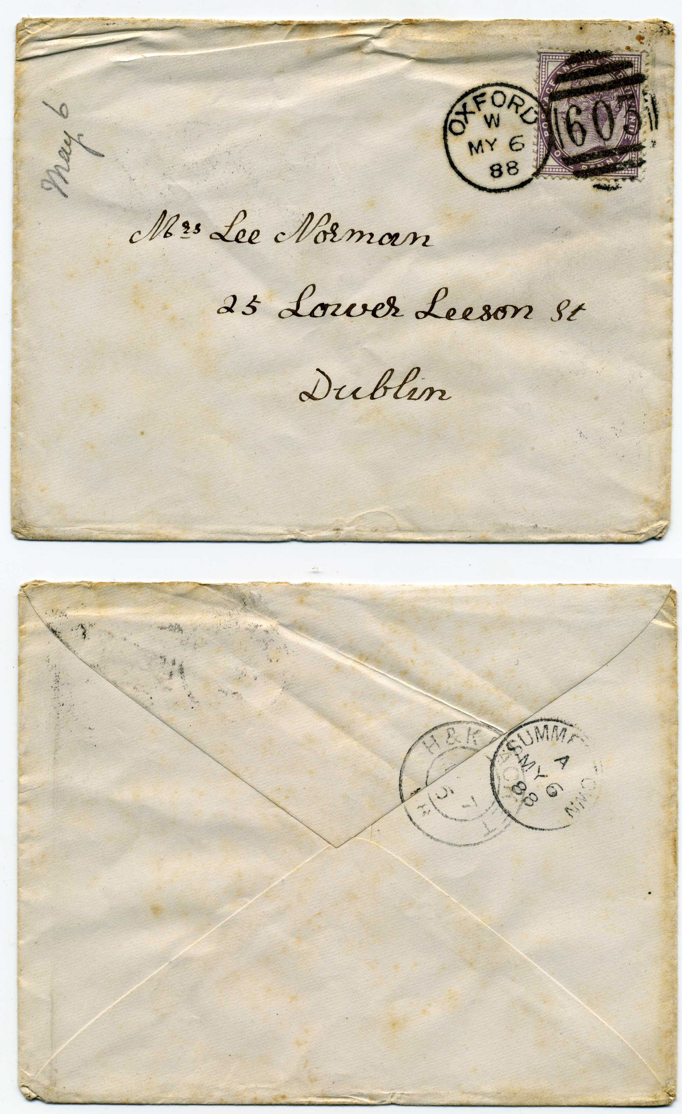 PH007.5153 Image | 1888 Cover posted from Oxford to Dublin with excellent strike on reverse of Trollope type H & K double ring cancel.