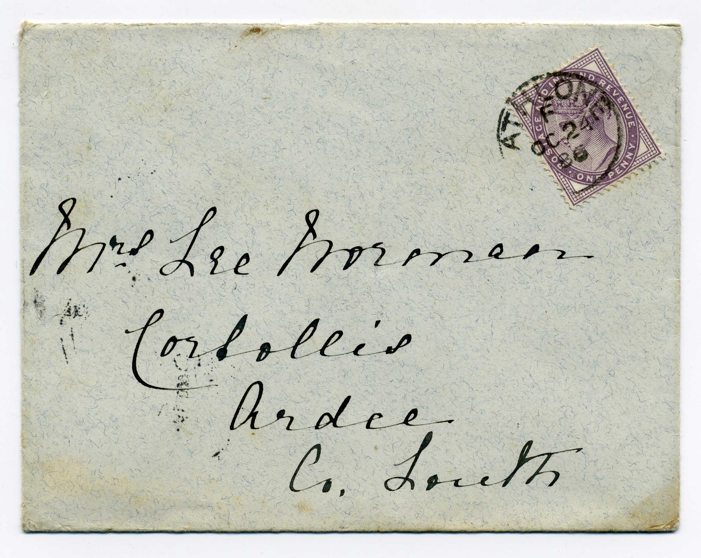 PH007.52000SOLD | 1895 Cover from Harrow to Ardee with very good strike on reverse of Ardee Duplex