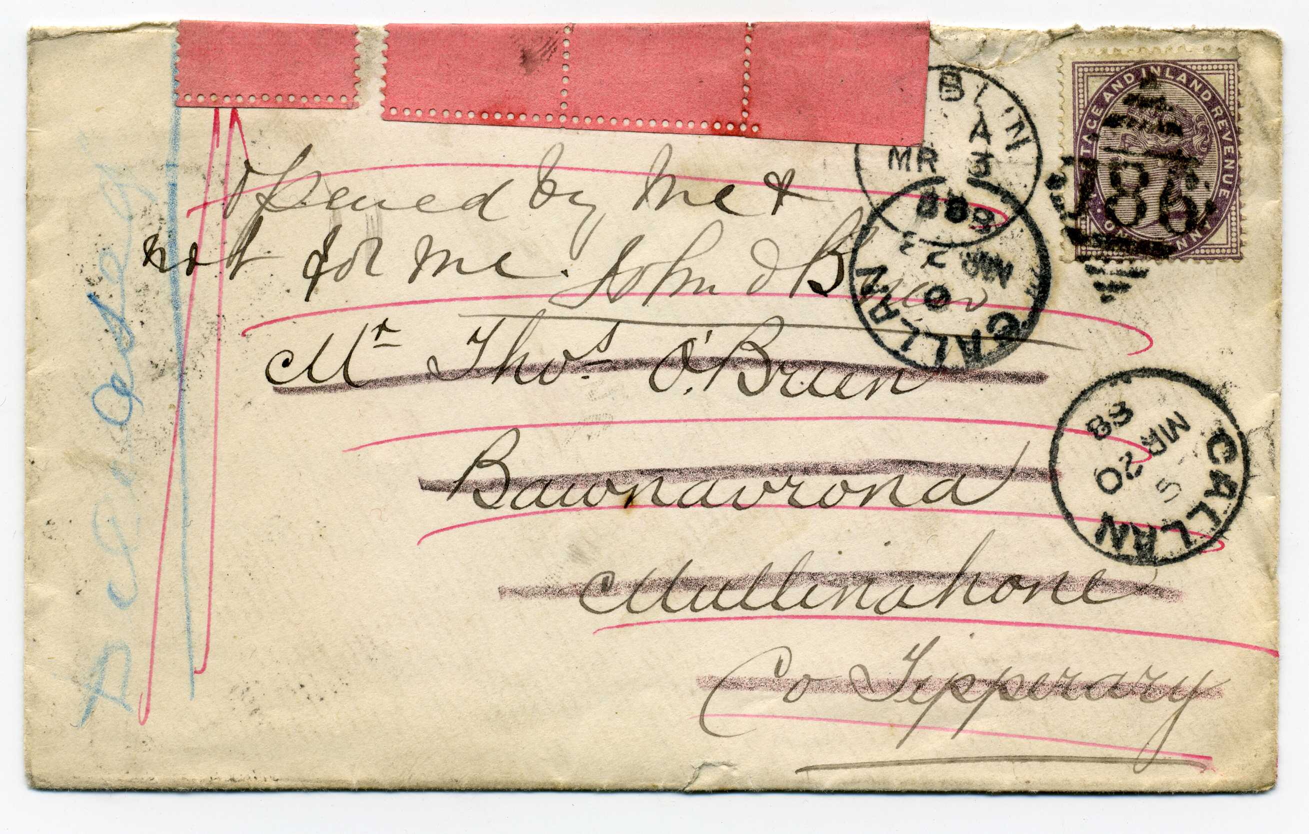 PH007.5154 Image | 1888 Re Directed Cover from Dublin to Mullinahone bearing Dublin Duplex and backstamps of Mullinahone and Callan
