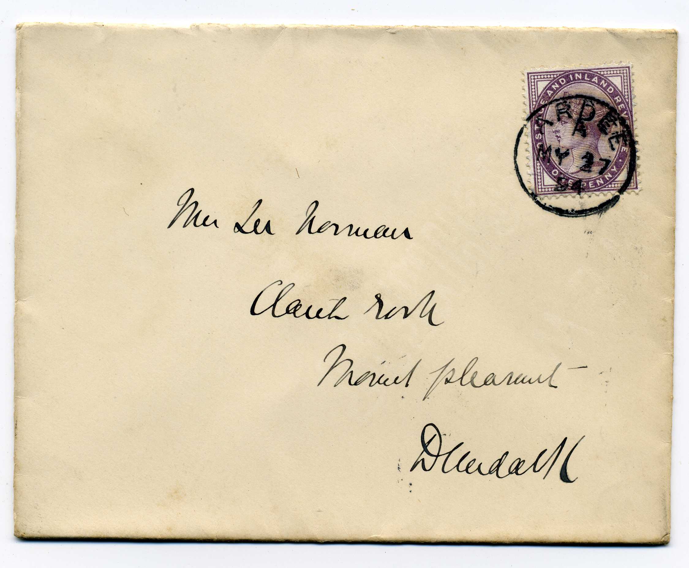 PH007.517 Image | 1894 Cover bearing Penny lilac tied by Castlebellingham Duplex