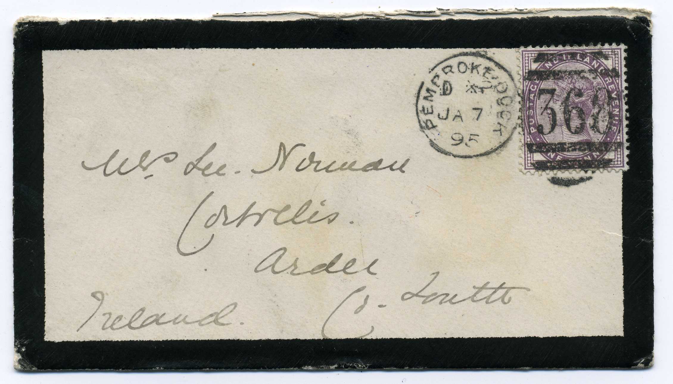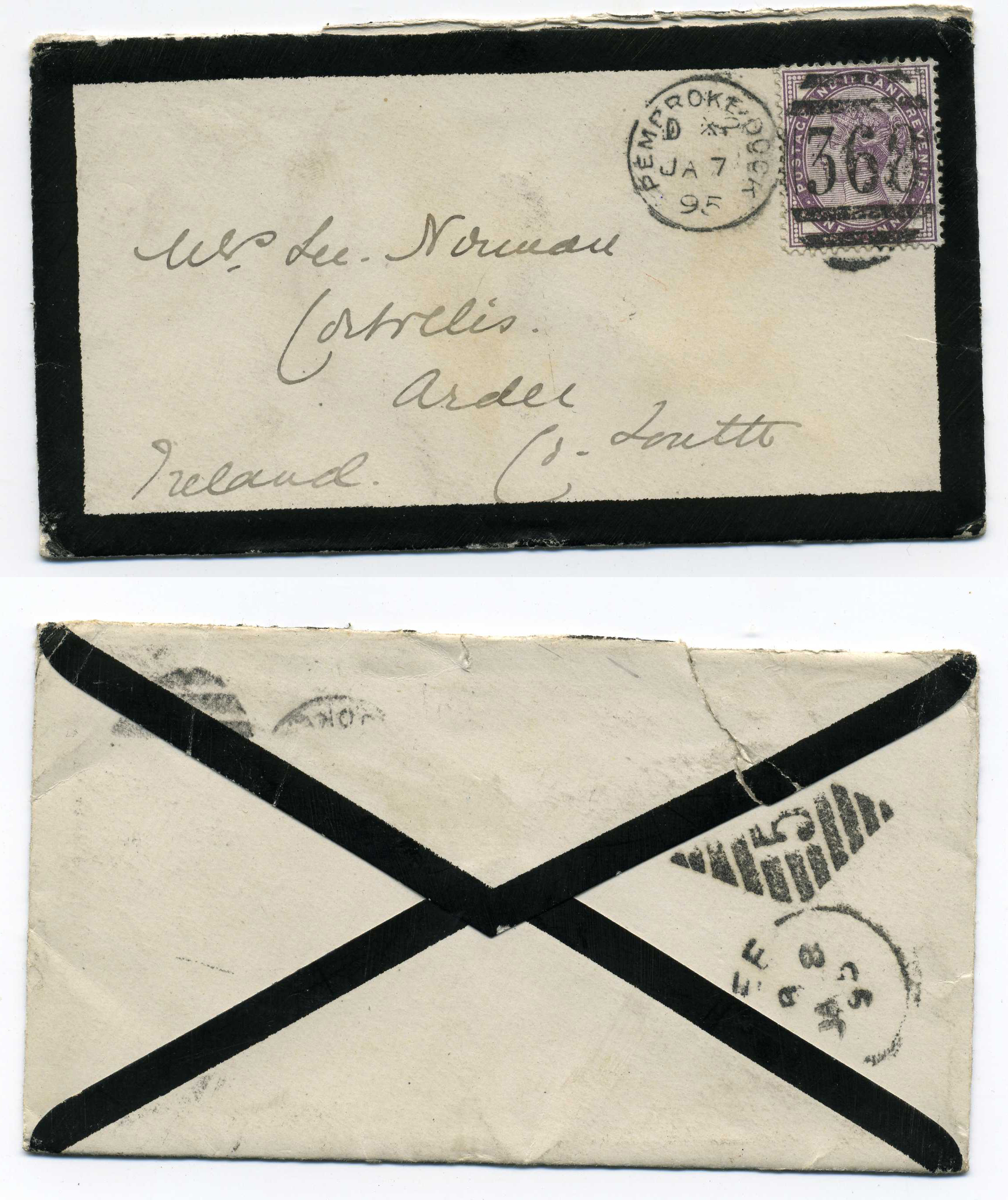 PH007.52050 Image | 1895 Cover from Pembroke Dock to Ardee with very good strike on reverse of Ardee Duplex