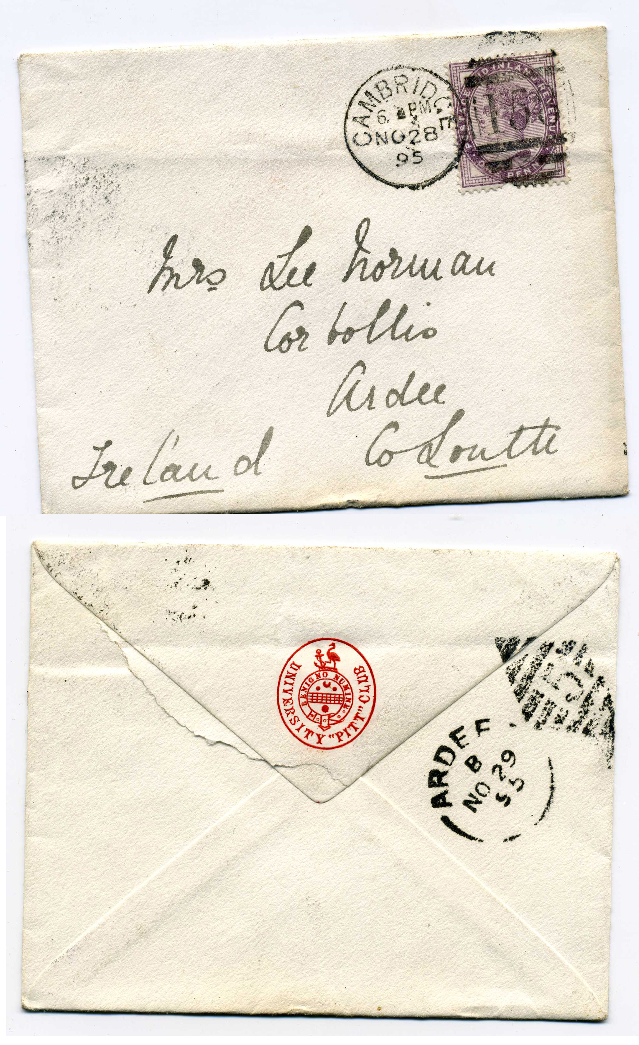 PH007.52051 Image | 1895 Cover from Cambridge to Ardee with very good strike on reverse of Ardee Duplex
