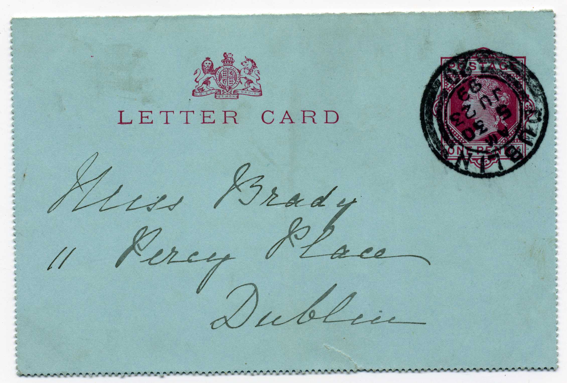 PH007.522 Image | 1899 Queen Victoria 1d Postal Stationery Lettercard used locally in Dublin with Dublin cds 23/6/99