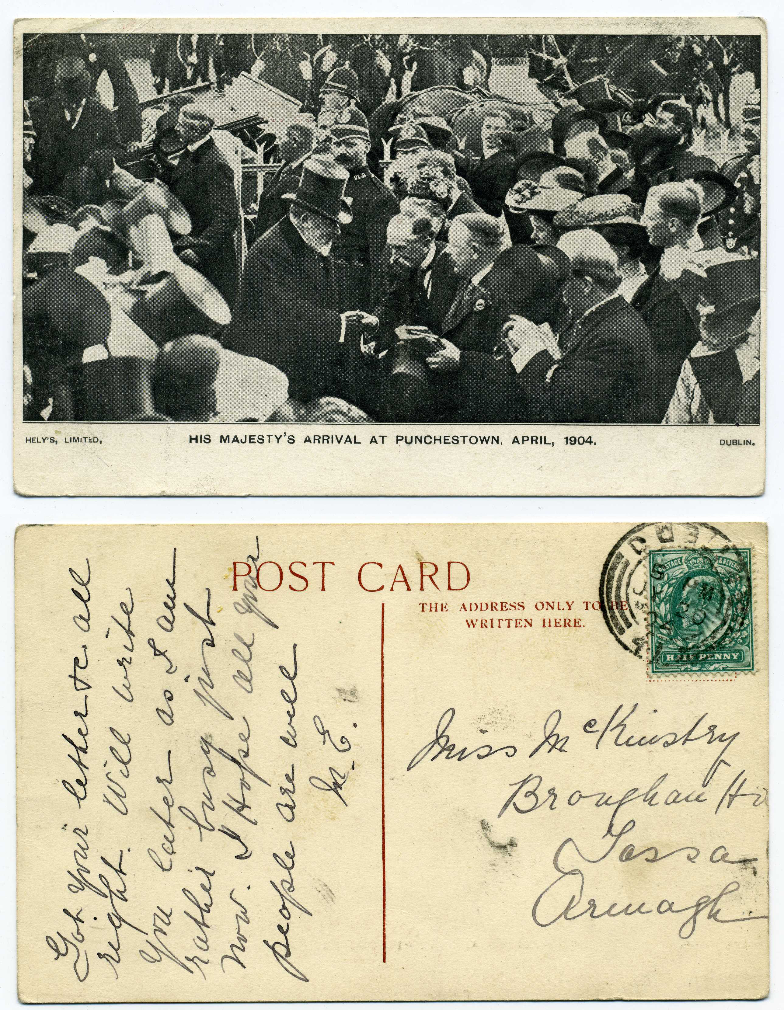 PH010.6 Image | 1904 April Picture Postcard "His Majesty's Arrival at Punchestown" used with Dublin cds cancel