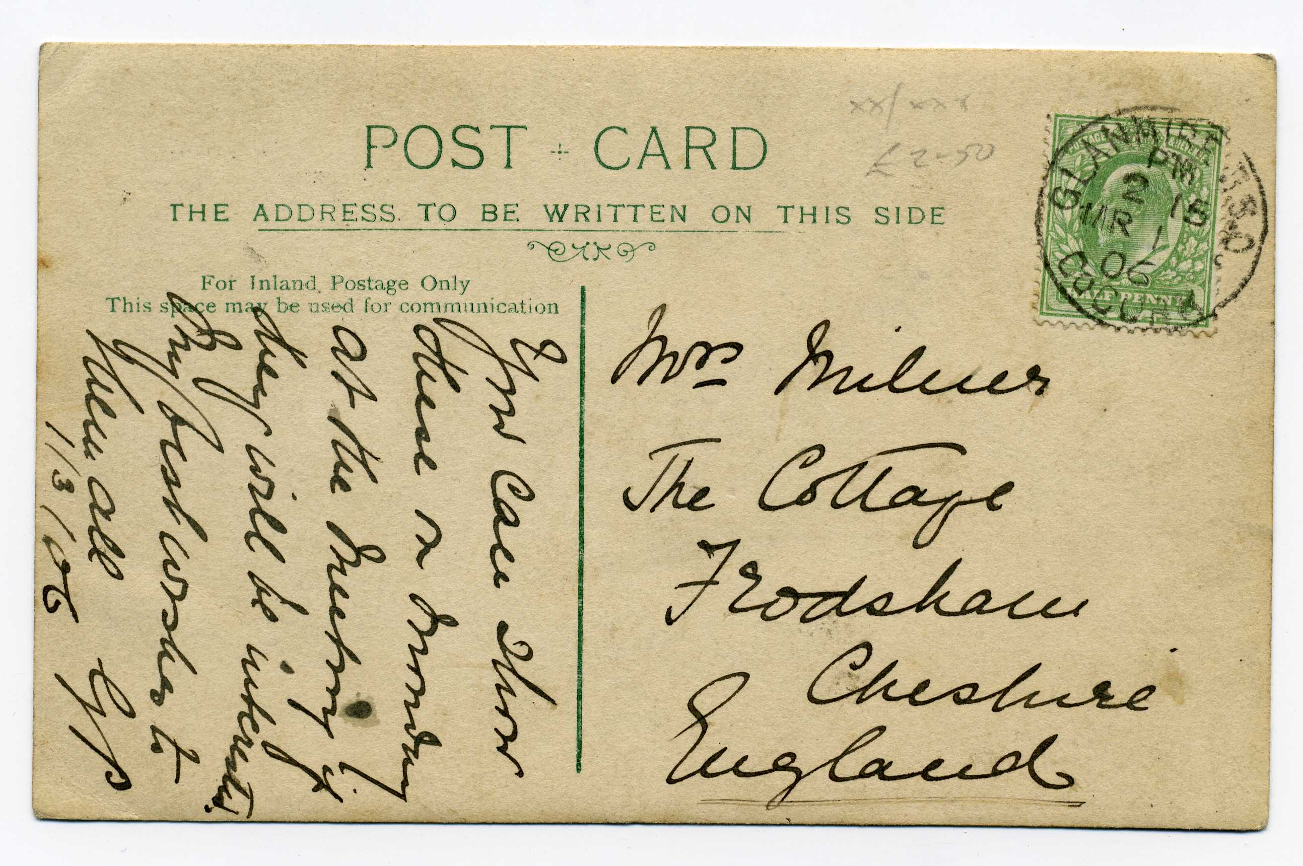PH012.7 Image | 1906 Picture Postcard used with ½d adhesive tied Glanmire R.S.O. cancel