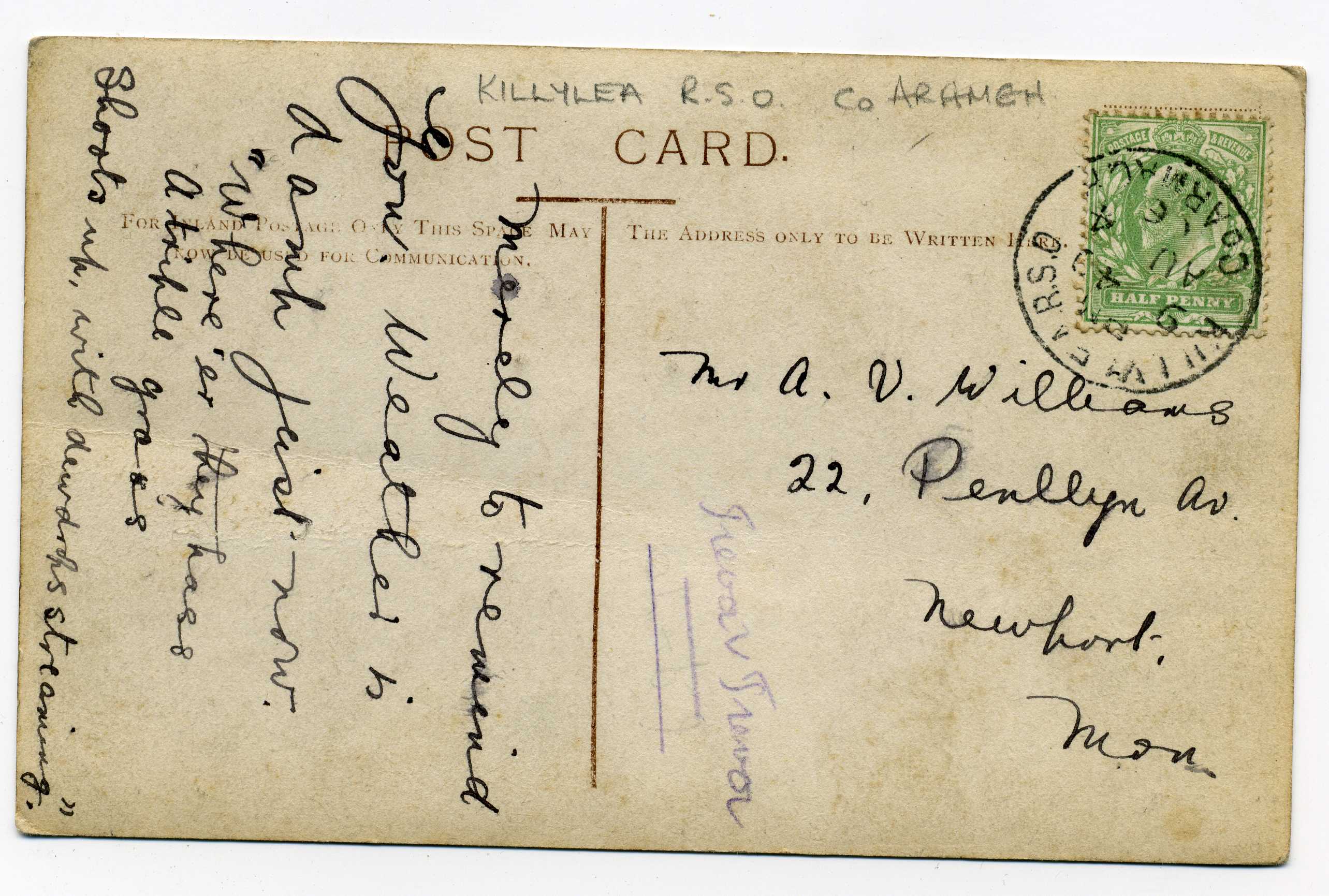 PH012.8 Image | 1906 Picture Postcard bearing ½d adhesive tied by Killylea R.S.O. Co. Armagh