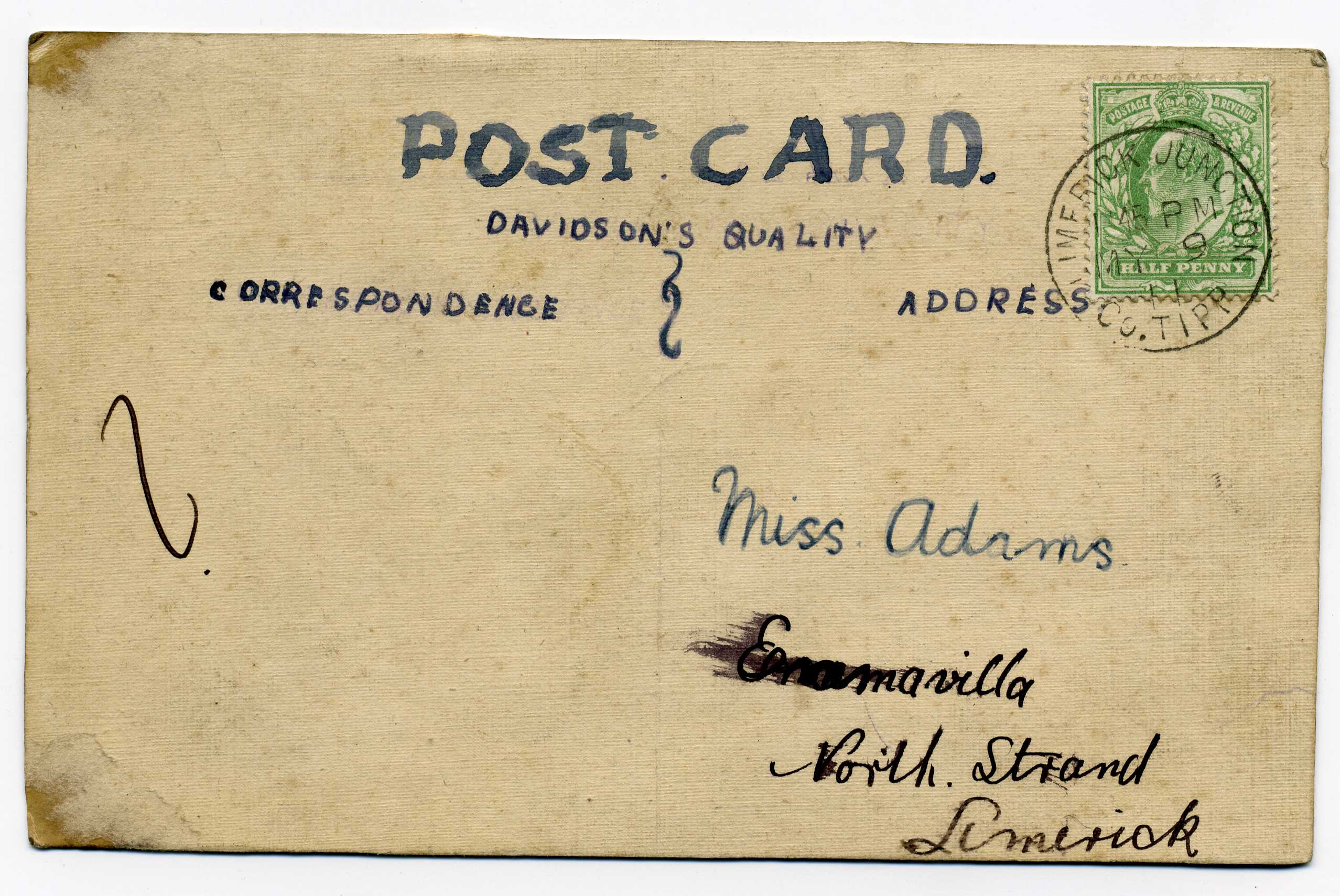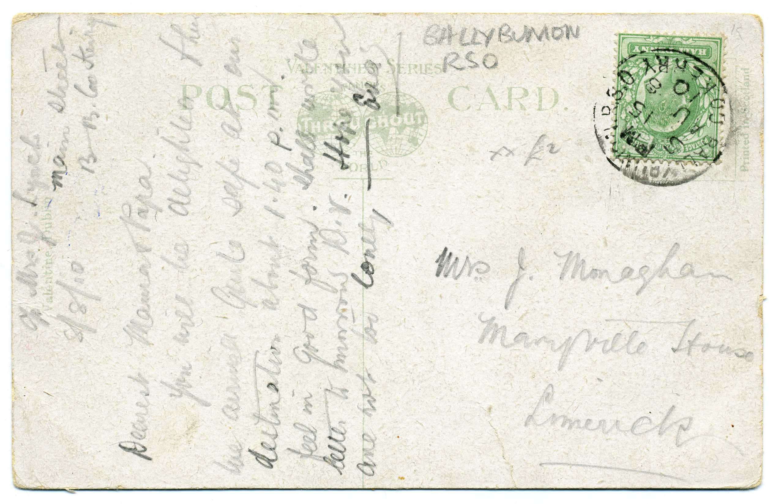 PH015.6 Image | 1911 Postcard used with ½d adhesive tied by Limerick Junction cds.