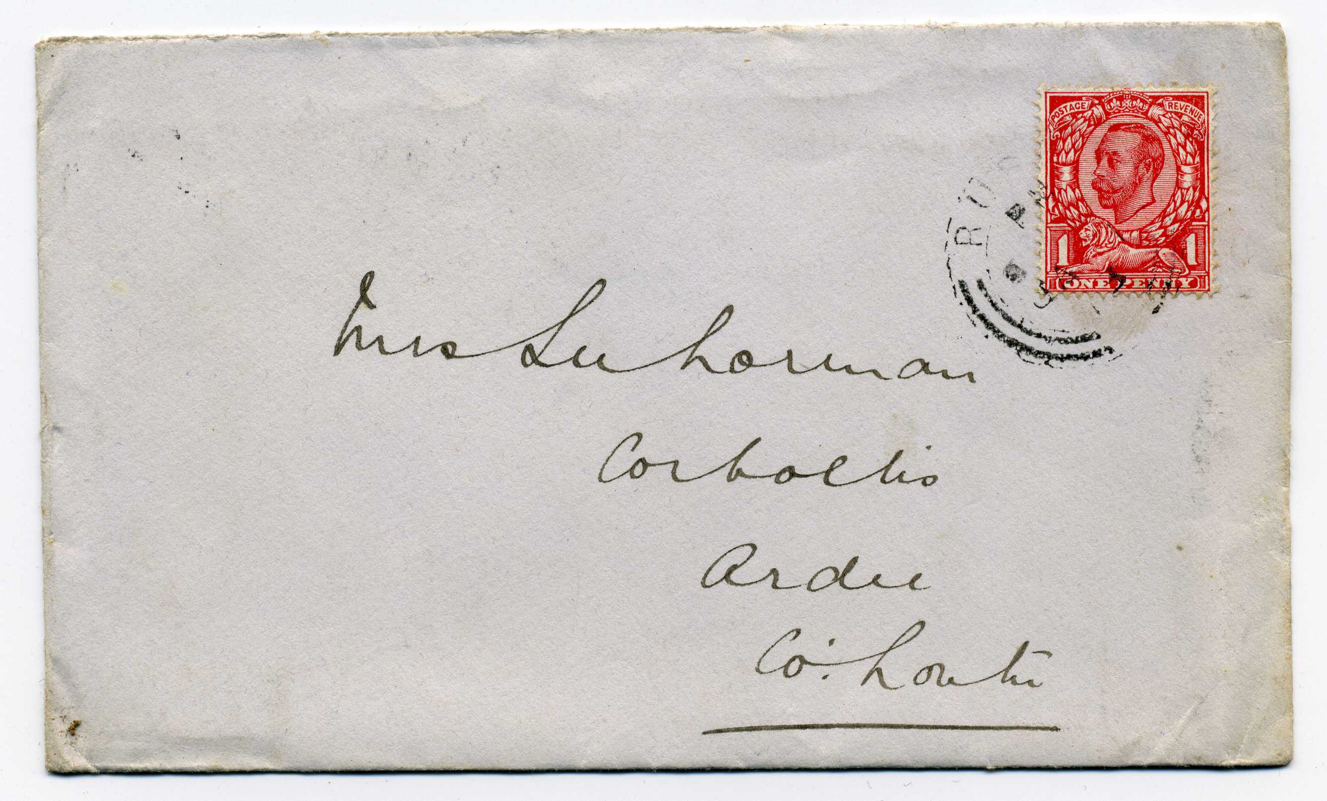 PH035.77 Image | 1920 Cover bearing 1½d adhesive tied by Ballacolla Abbeyleix cds