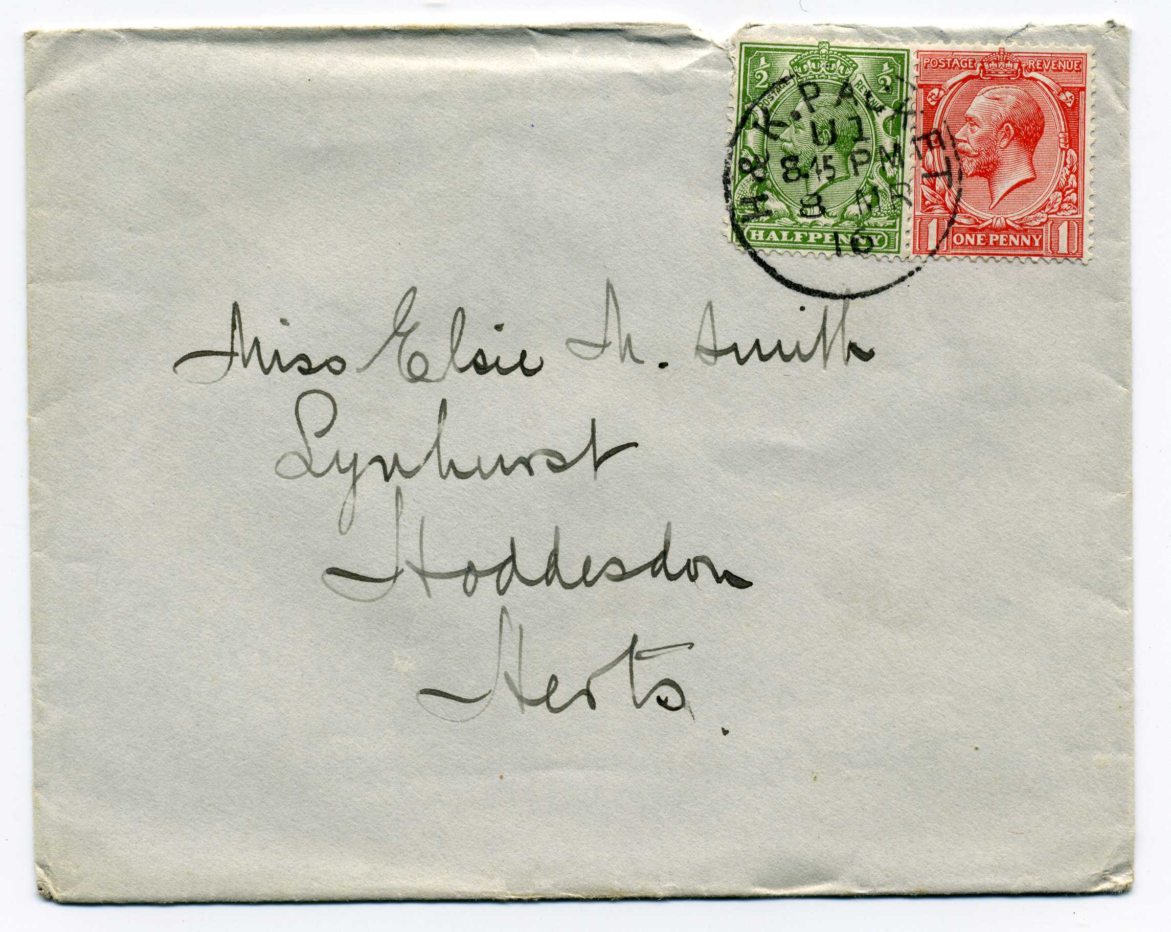 PH033 Image | 1916 March 8th Cover to England with ½d and 1d adhesives tied by single strike "H & K Packet Code U1", small tear on reverse but a scarce cover.