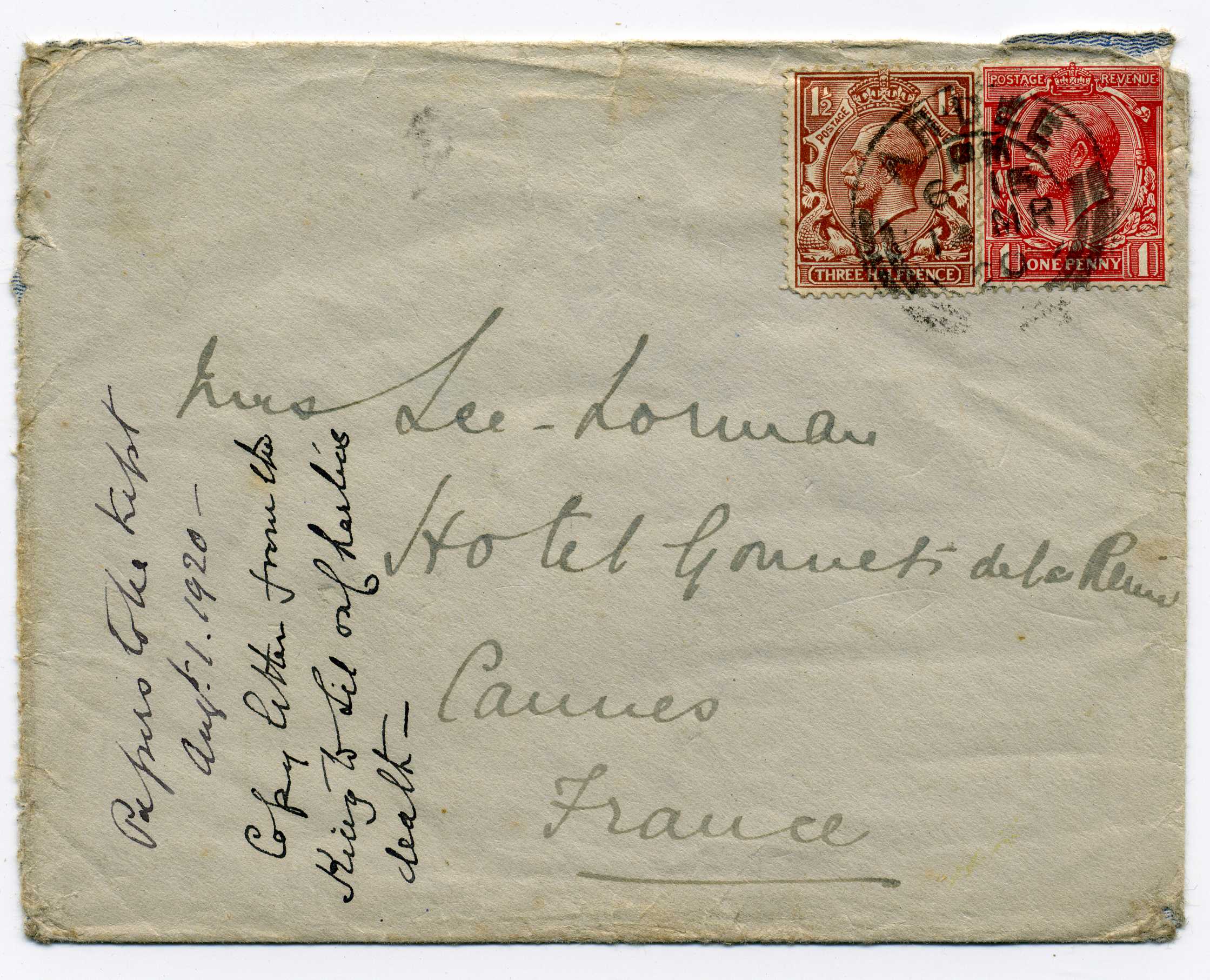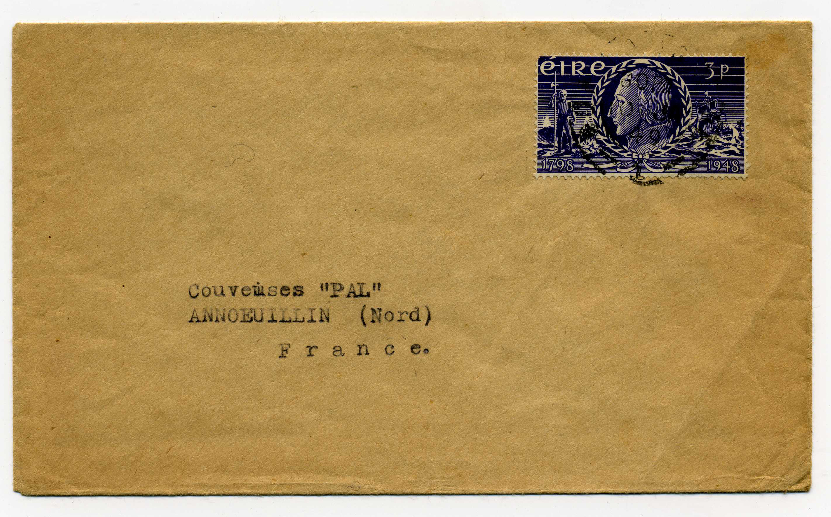 PH035.5 Image | Cover addressed to France bearing 1d and 1½d adhesives tied Ardee cds