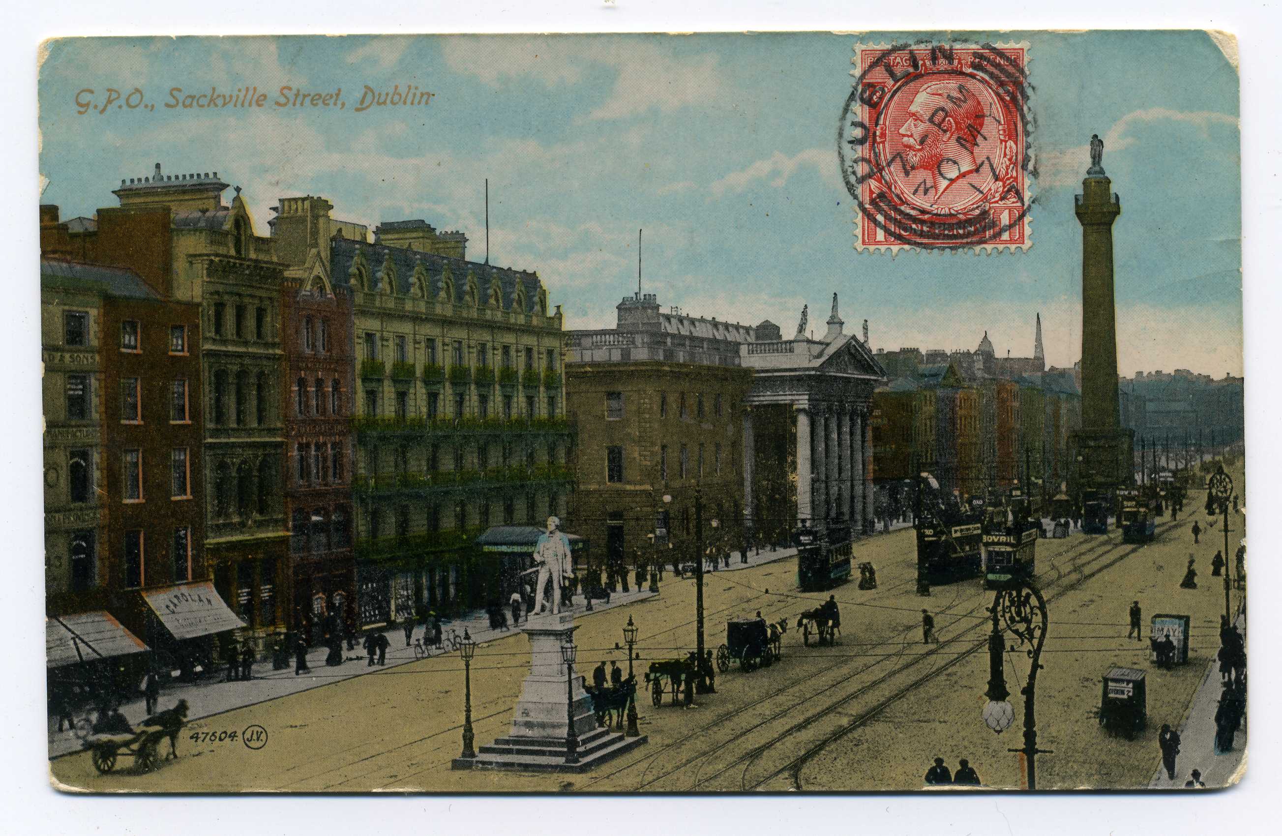 PH035 Image | 1917 Picture Postcard of GPO Sackville St. used to Portugal with 1d adhesive tied by Dublin cds, the adhesive being placed on the picture side