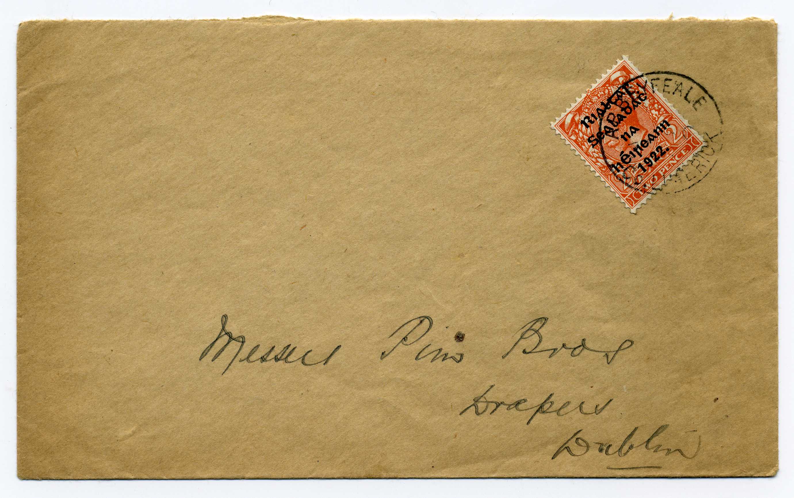PH044.04 Image | 1922 Thom 2d overprint Die 2 used on cover with neat Abbeyfeale Co. Limerick