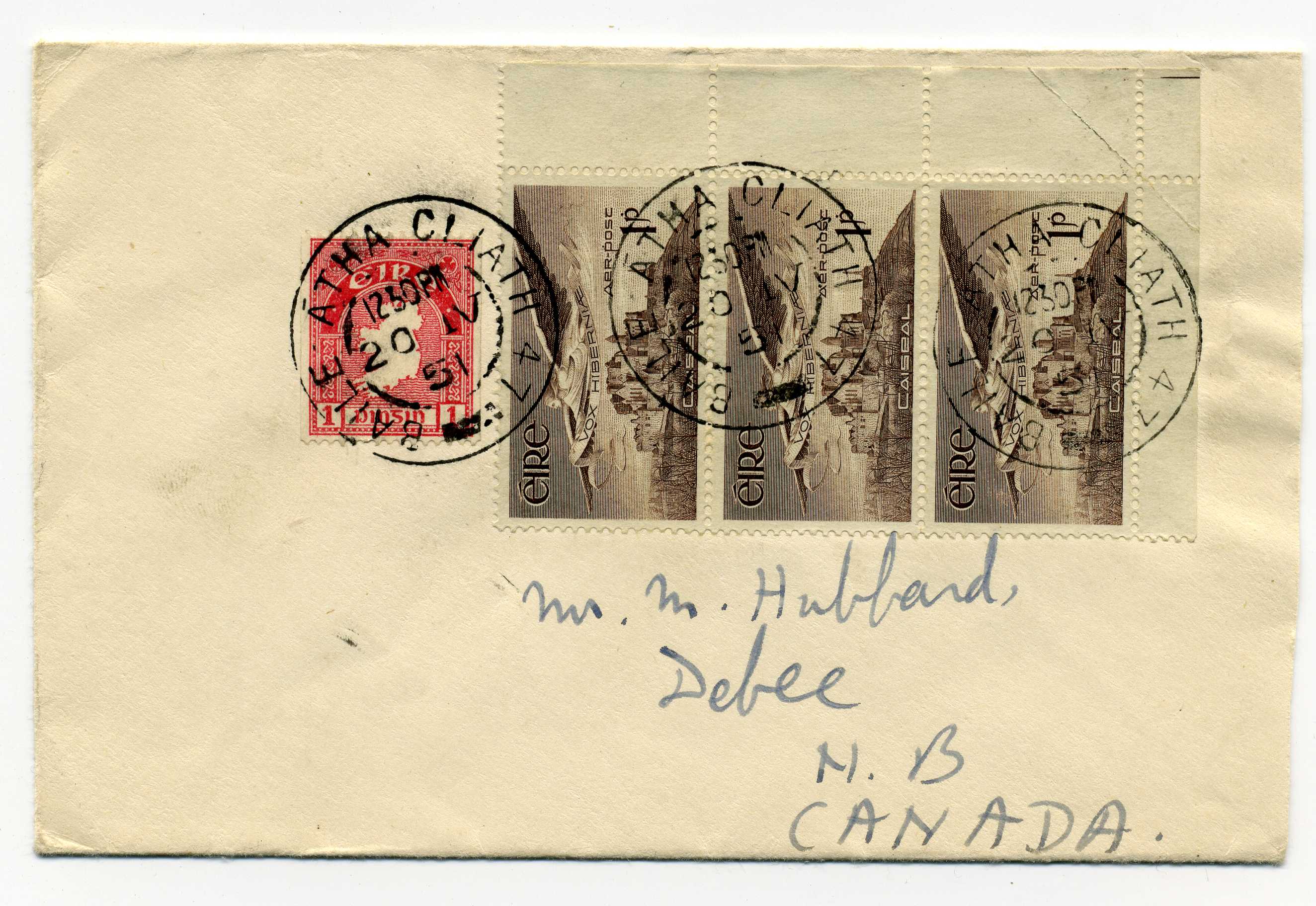 PH064.5 Image | 1951 Cover to Canada bearing strip of three Airmail 1d values plus 1d Coil Perf 15 x Imperf all tied by Baile Atha Cliath