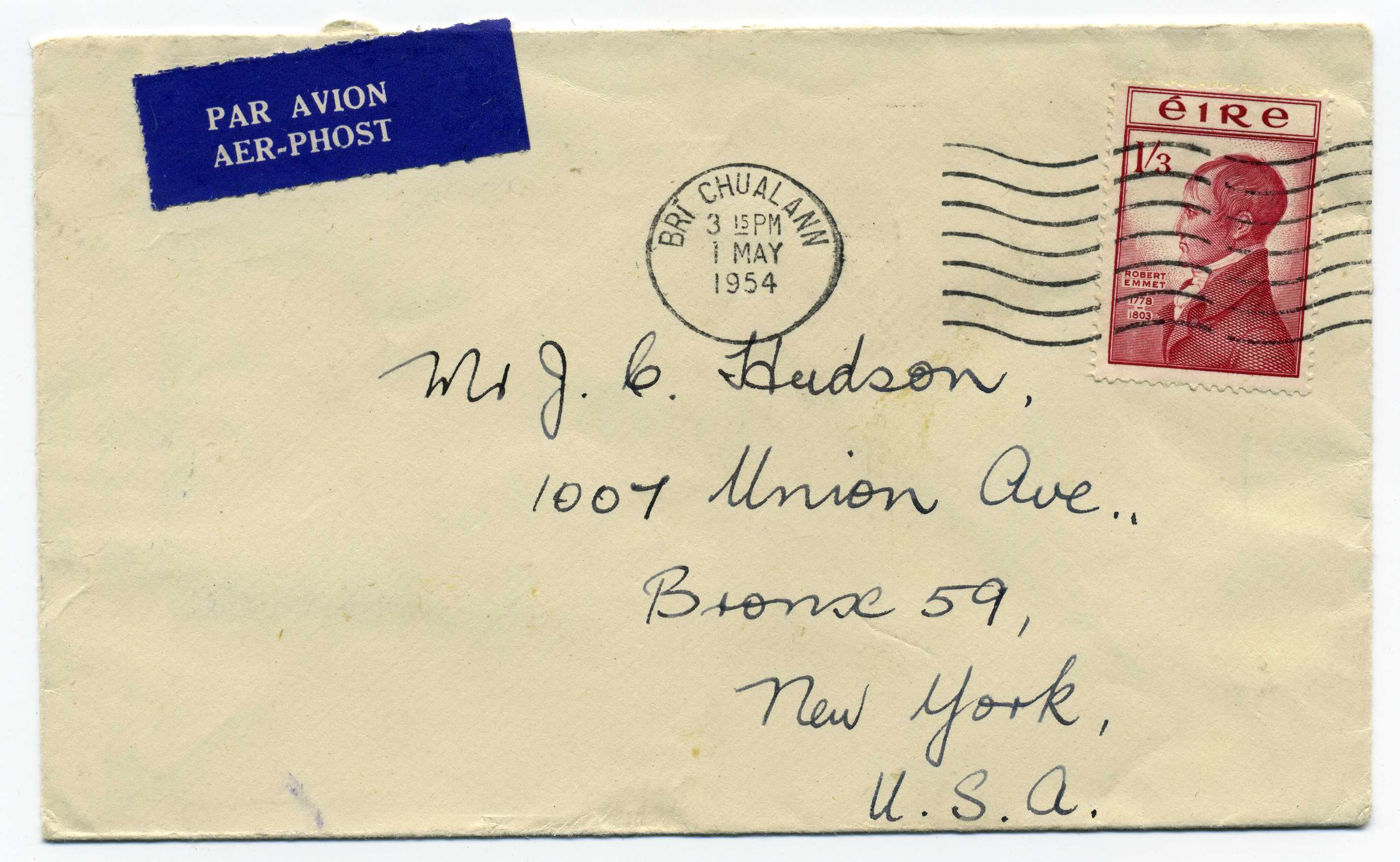 PH069 Image | 1954 Airmail Cover bearing Emmet 1-3d tied by Bray machine cancel.