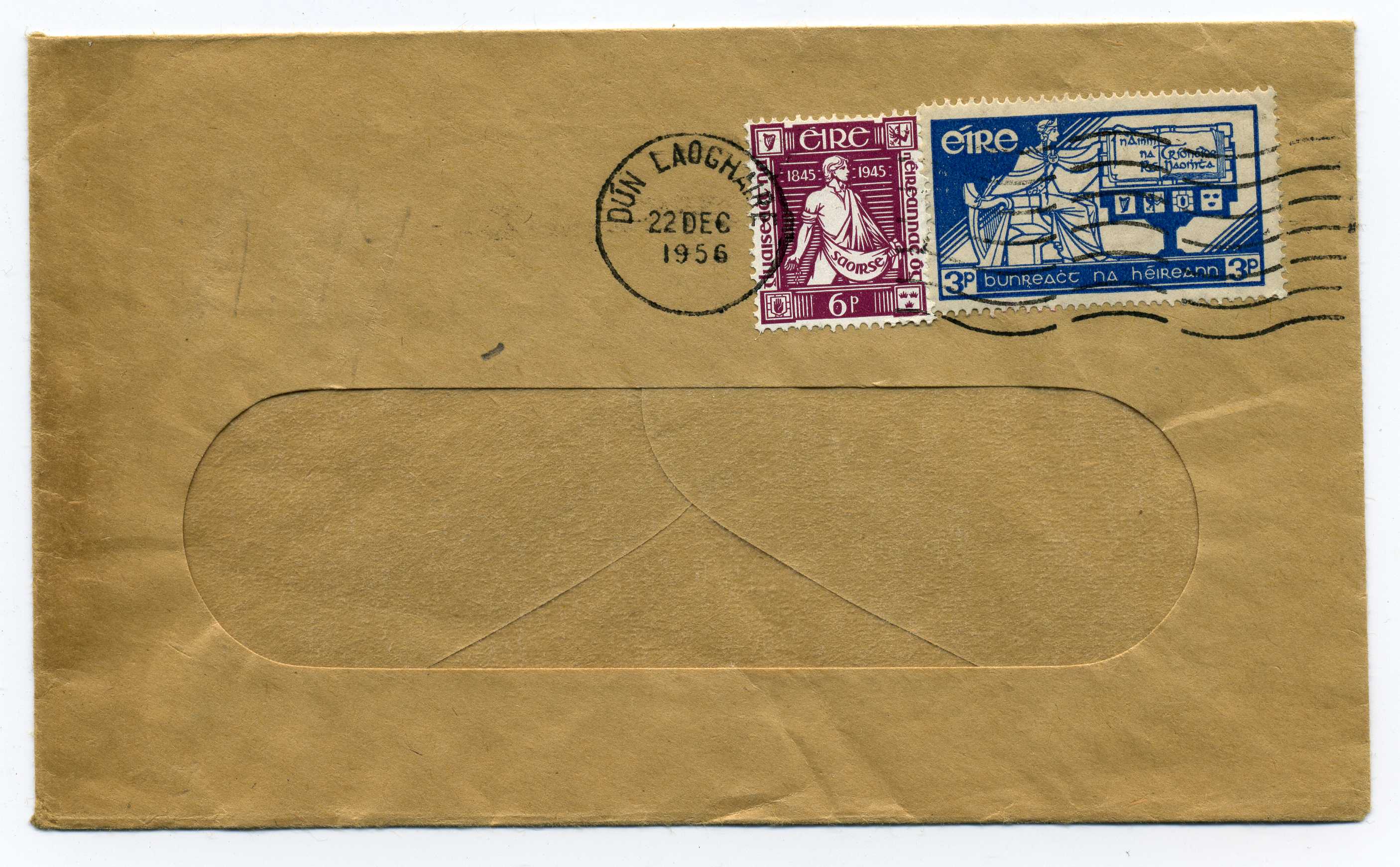 PH074 Image | 1956 Window Envelope bearing Thomas Davis 6d and Irish constitution 3d tied by Dun Laoghaire machine cancel