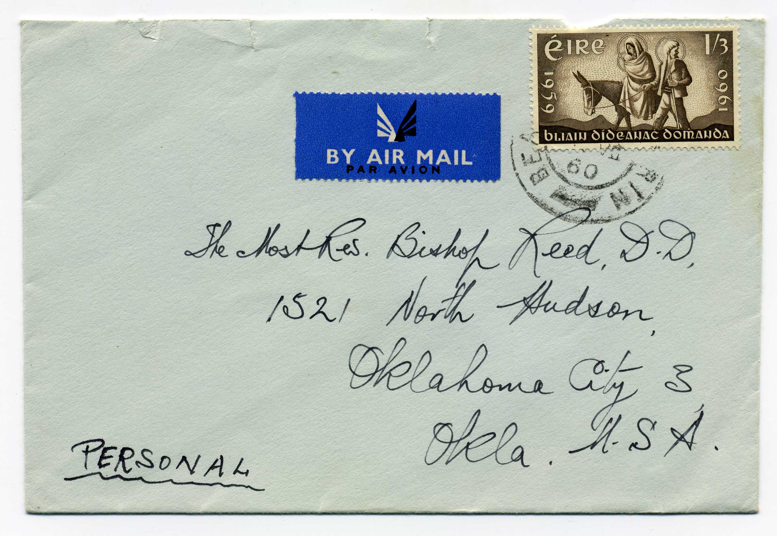 PH095 Image | 1960 Refugee Year 1-3d used on airmail cover with cds cancel.