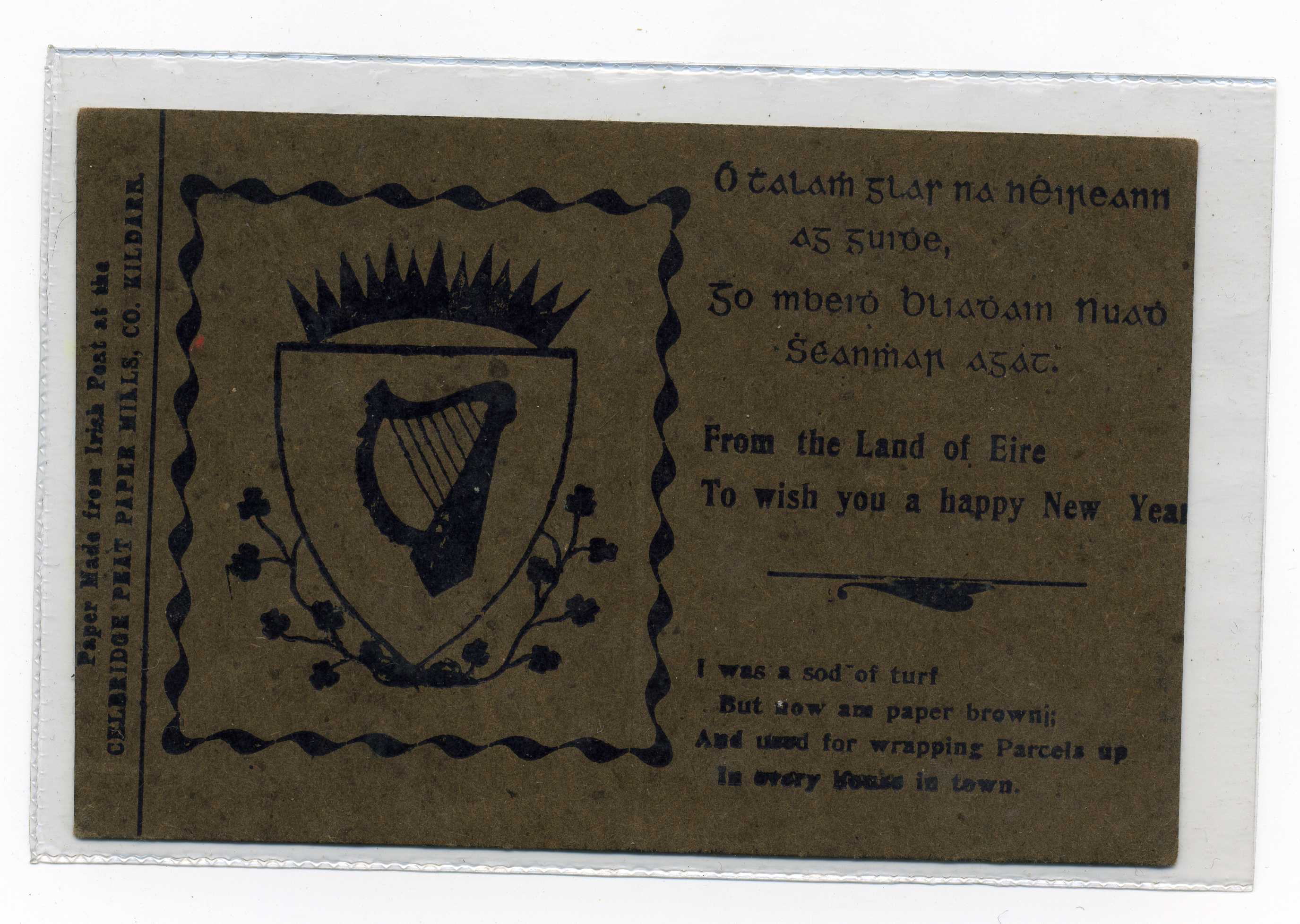 PH123 Image | Mint New Year Postcard produced by Celbridge Peat Paper Mills and made from Irish Peat
